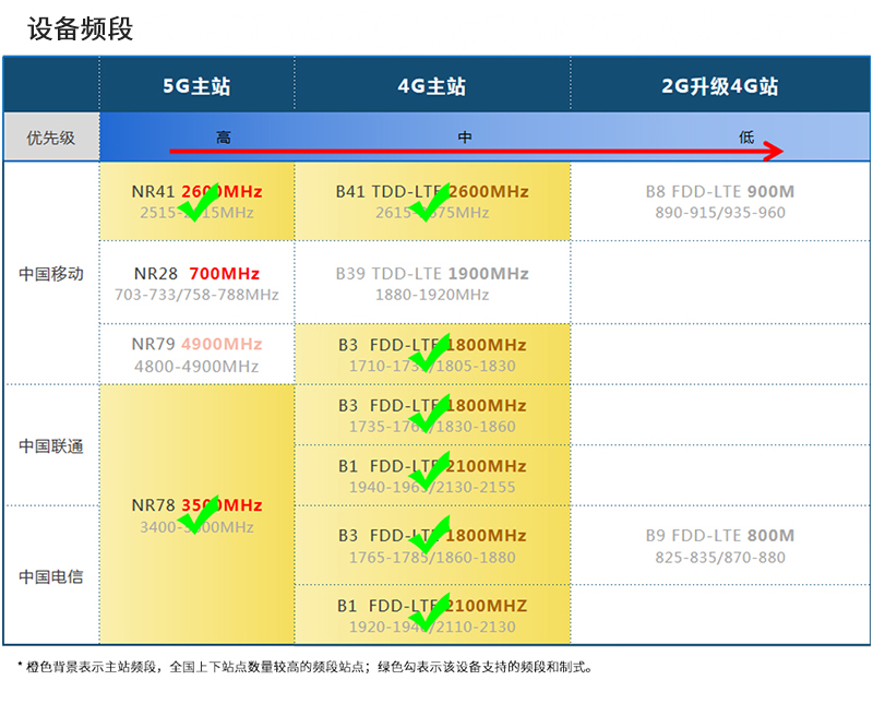 其中2600M为2515-2675MHz全频160MHz带宽,包含中国移动的5G的NR100MHz和4G的LTE60MHz