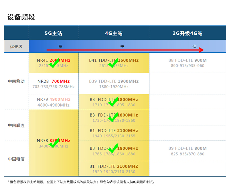 其中2600M为2515-2675MHz全频160MHz带宽,包含中国移动的5G的NR100MHz和4G的LTE60MHz
