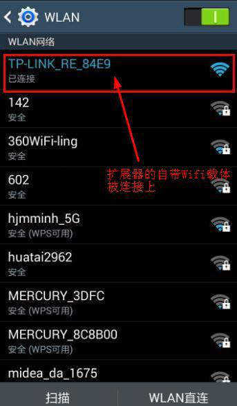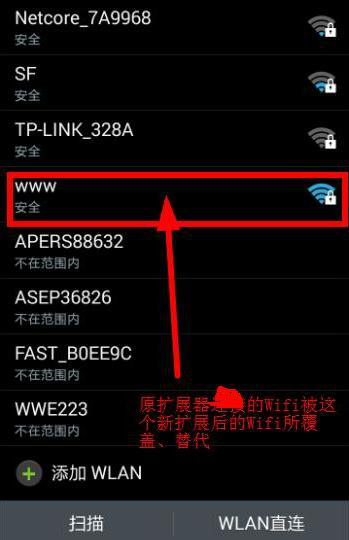 图 18:Wifi扩展成功,原扩展器上的Wifi载体被这个新扩展后的Wifi所覆盖