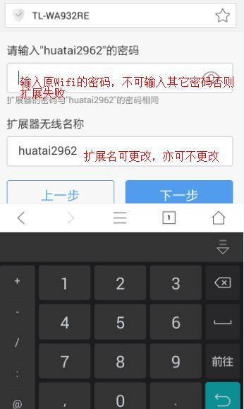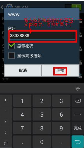 图 15:输入原Wifi密码,不可输错,否则扩展失败;还有更改扩展名(给Wifi起个新名字)
