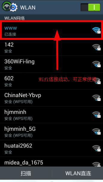 图 20:恭喜你新扩展的Wifi已连上,手机、电脑、平板及多媒体电子产品可接收、分享来自扩展器发射这个增强数倍Wifi信号了